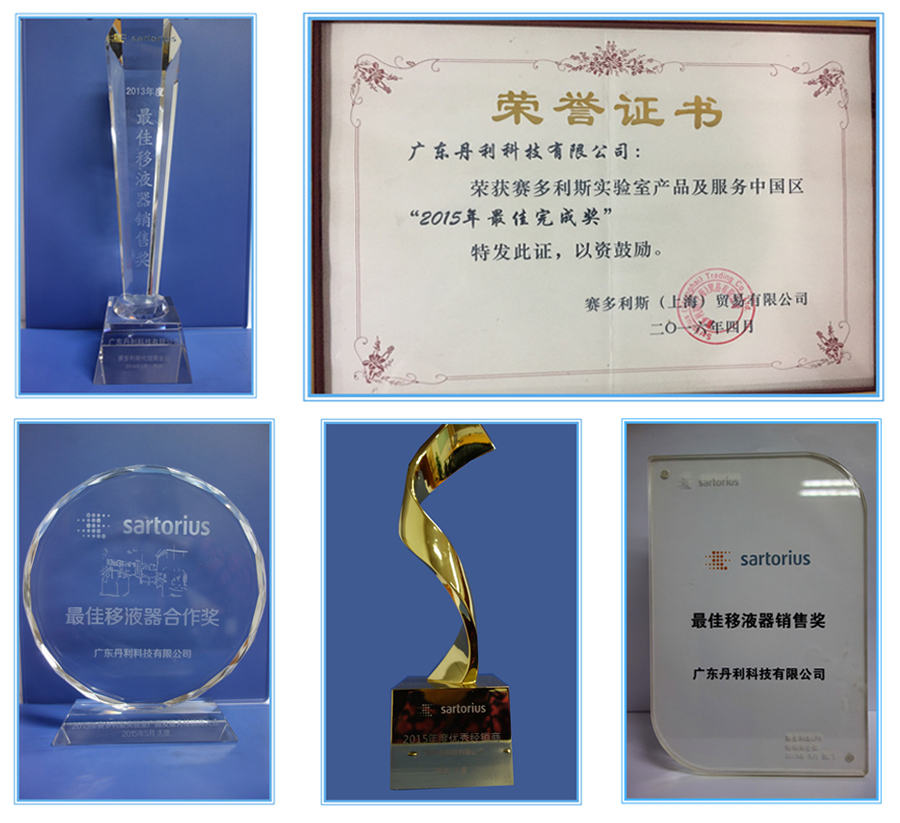 榮獲賽多利斯實(shí)驗(yàn)室產(chǎn)品及服務(wù)中國(guó)區(qū)“2015年最佳移液器合作獎(jiǎng)”