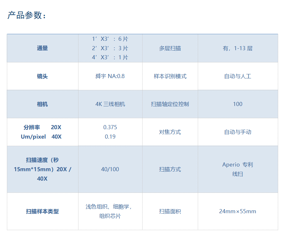 特點:高品質圖像質量150余年光學技術積淀;三棱鏡相機真實還原組織色彩;采用高保真色彩還原技術,增強對紅色敏感度,精準還原H&E切片色彩細節(jié)。多種明場切片掃描支持4種明場切片掃描;針對淺顏色等特殊切片開發(fā)專業(yè)算法;支持更多尺寸切片掃描,可快速切換到大玻片掃描模式;對于厚薄不均組織,可多層掃描融合成像。高效工作流Leica Aperio 線掃技術,快速成像,提升效率;自動模式與手動模式隨心切換;Leica 掃描成像-閱片-管理-分析整體解決方案。